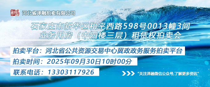 - 石家莊市新華區(qū)和平西路598號(hào)0013幢3間業(yè)務(wù)用房(中四樓三層)租賃權(quán)拍賣公告20250930